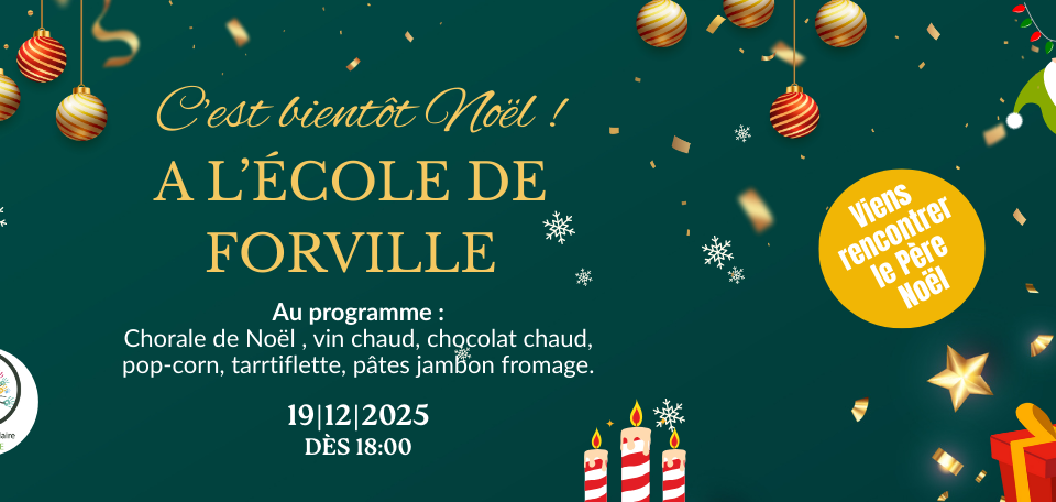 Les jours filent, la neige arrive et l’école de Forville se prépare et vous invite à son évènement « C’est bientôt Noël ». Rien de tel pour finir la semaine que se réunir pour écouter la chorale de nos enfants chanter quelques chants de Noël. Dès 18h00, les portes de l’école s’ouvriront pour vous accueillir à l’exposition […]